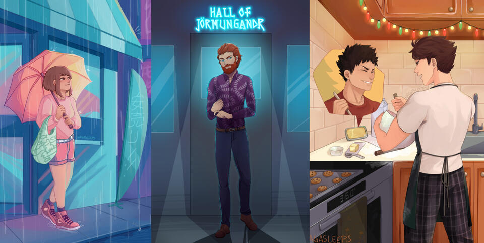 Can I repost your art?Do not repost my art onto twitter, instagram, tumblr, or tiktok. I already have profiles on them so you can view the pieces there if you'd like. DO NOT repost to pinterest. Any other websites, ask and I'll most likely say yesCan I use your art as an icon/header/wallpaper?Yup! If its a public profile please credit me where you canWhat program do you use?Clip Studio PaintCan I write fic inspired by your art?For fanart, yes! Just give me a shout out for inspo if you do, and also let me know because I'd love to read itCan you make a sequel to [insert whatever here]?You can commission me for it!